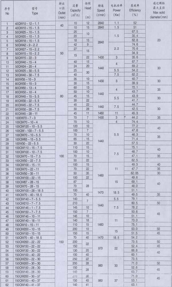 QW型系列混流式潛水泵系單級(jí)、單吸、軸向吸入、立式、機(jī)電一體、葉輪與電機(jī)軸直聯(lián),潛入泥漿、原油或清水等介質(zhì)中工作,輸送介質(zhì)的混合物比重為1:1-1:1.45。是油田石漬鉆井過程中抽送漿、清水或原油至循環(huán)泥漿池最理想的配套設(shè)備。也是電廠礦山、煉油、造紙、印染、環(huán)保、市政工程、化工、漁塘鹽廠、釀造、大理石廠、建筑、煤礦等行業(yè)抽排泥漿和污水理想的泵型。同時(shí),也可根據(jù)用戶的實(shí)際使用要求及介質(zhì)情況,設(shè)計(jì)生產(chǎn)其它規(guī)格型號(hào)產(chǎn)品.